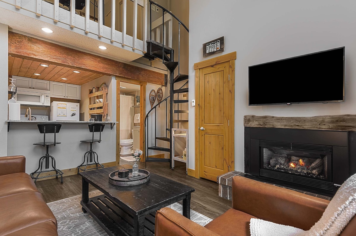 PLEASE NOTE: Pool complex closed April 27th-mid May 2026 Early check in/Late check out not available. Kick back and relax in this calm, stylish space. Our warm and welcoming condo is nestled in a quiet but convenient area very close to lifts and town. Cozy up to the gas fireplace, Relax on the covered deck Adirondak chairs with coffee or a cocktail. Use the provided robes to take an easy stroll to the pool and hot tubs after a day of skiing or hiking. Mountain luxury is just a click away!