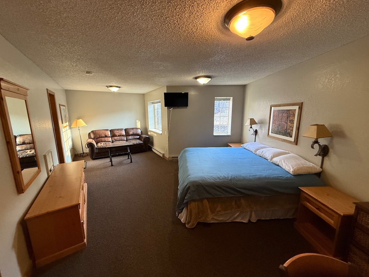 EXCLUSIVELY on Airbnb! Our STUDIO KITCHENETTE has a single queen bed. Designed in a one-of-a-kind retro flair, this room is uniquely arranged with a modern-rustic kitchen, tasteful furnishings and spacious bathroom. Vintage accents, full sized retro appliances, Keurig style coffee maker, and a large HD TV give a taste of rustic luxury in the Colorado mountains. AMERICAN CLASSIC INN is reshaping the guest experience - our renovated motel is a charm waiting to be discovered. *NO cleaning fee!*