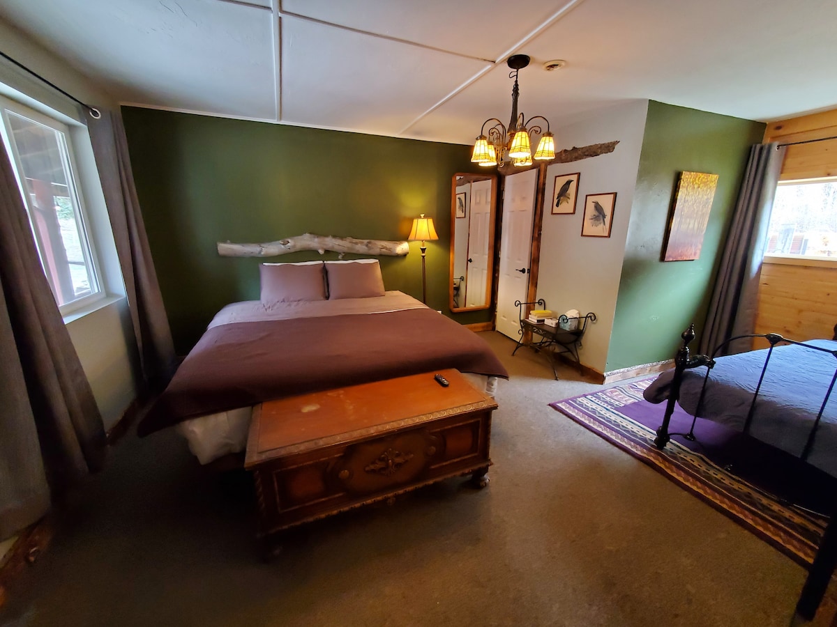 Step into a realm of tranquility where magic awaits at every turn! Our Enchanted Forest cabin invites you to unwind amidst nature's embrace, boasting a natural river rock floor and a whimsical mushroom bed crafted by Denver's own Doug Schenck. Whether you're seeking solace after a Red Rocks show or a serene getaway, let the enchantment of our cabin weave its spell around you. Book now and discover the perfect sanctuary to craft memories and tales that last a lifetime.