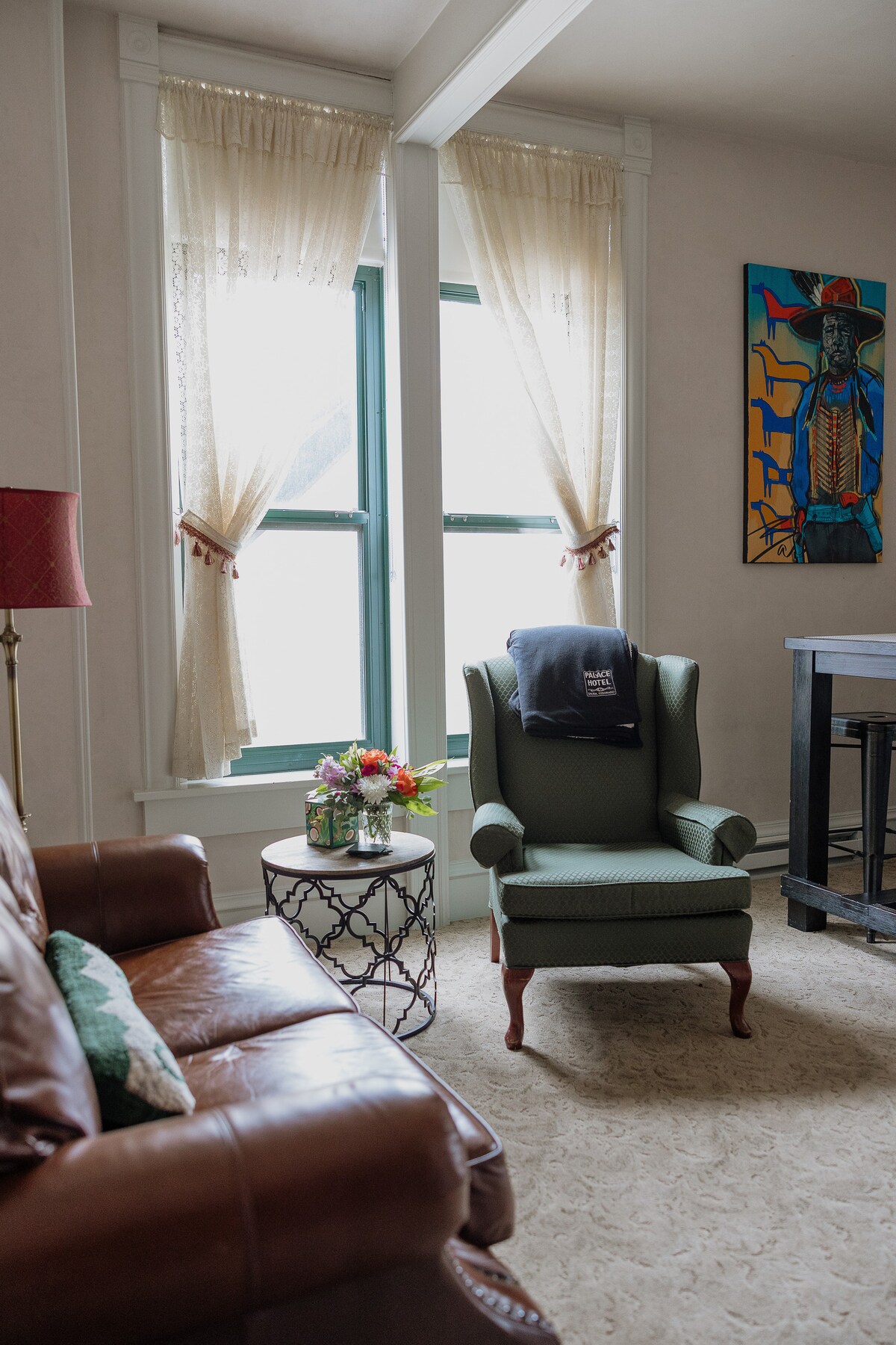 Winterfel is a beautiful studio apt. Located upstairs at the Ore House Inn, a 130 year old building in downtown New Castle! Sleeps 2 with full kitchen and full bath. Themed room has cable t.v. and all typical hotel amenities. Our hallways characterize New Castle's mining history. Close to Sunlight Ski, The Flattop Mountains and Rifle Mountain Park we hope your needs for the Colorado Mountain environment will be met. Your Private (not shared) bathroom is right across the hall! EV charging!