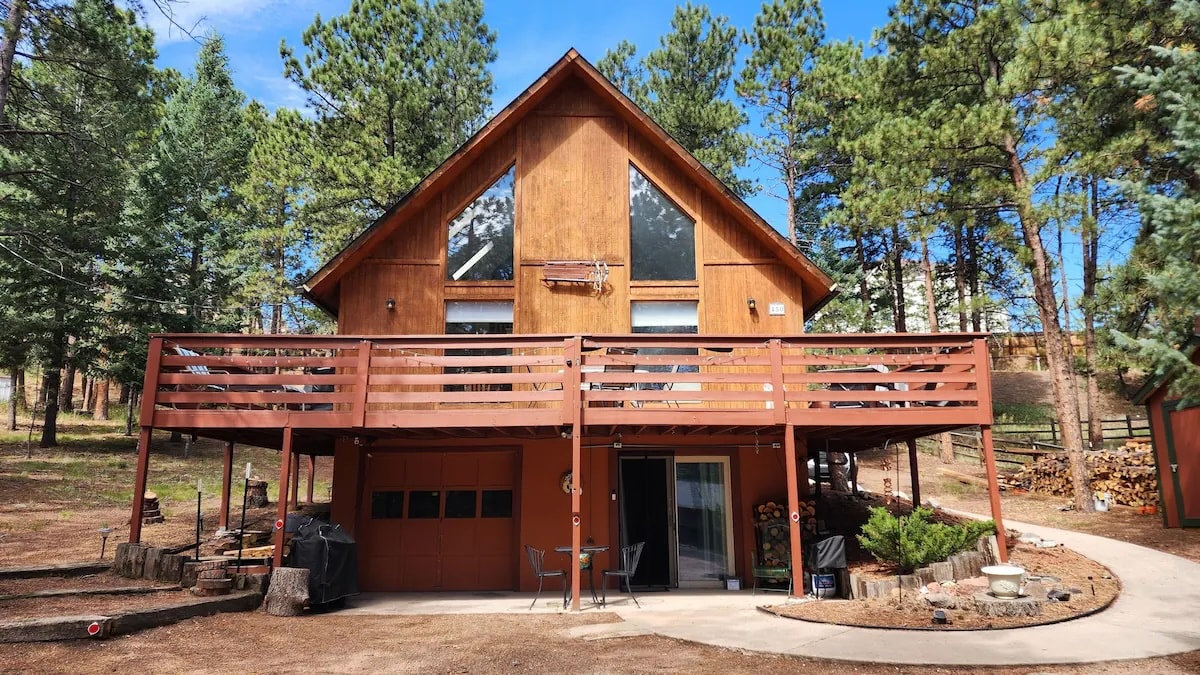 Breathe in the fresh mountain air at this charming A-frame with a 7 person hot tub, outdoor fire pit, Pac-Man machine, and grill. This quiet retreat has 3 bedrooms & sits of 4 acres, surrounded by pine trees. There are many hiking trails, lakes, and streams nearby. You’re just a short drive from Manitou Springs, Woodland Park, gambling in Cripple Creek, Pikes Peak, and the Garden of the Gods. Step out on the deck and see what wildlife you can find! The memories to be made here are endless.