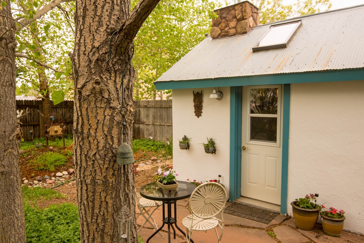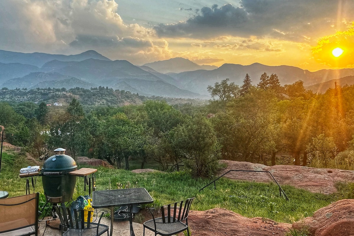 Enjoy stunning views of the sun setting behind Pikes Peak through floor-to-ceiling windows! Sip your morning coffee on the private patio as a family of deer wander by. Walk into the Garden of the Gods and then relax in the hot tub beneath the stars. Prepare a delicious meal with everything you need already provided for you; cookware, oils, and spices - and enjoy it with mountain views as your backdrop Discover your ideal Colorado Springs retreat in my lovingly renovated historic guesthouse!