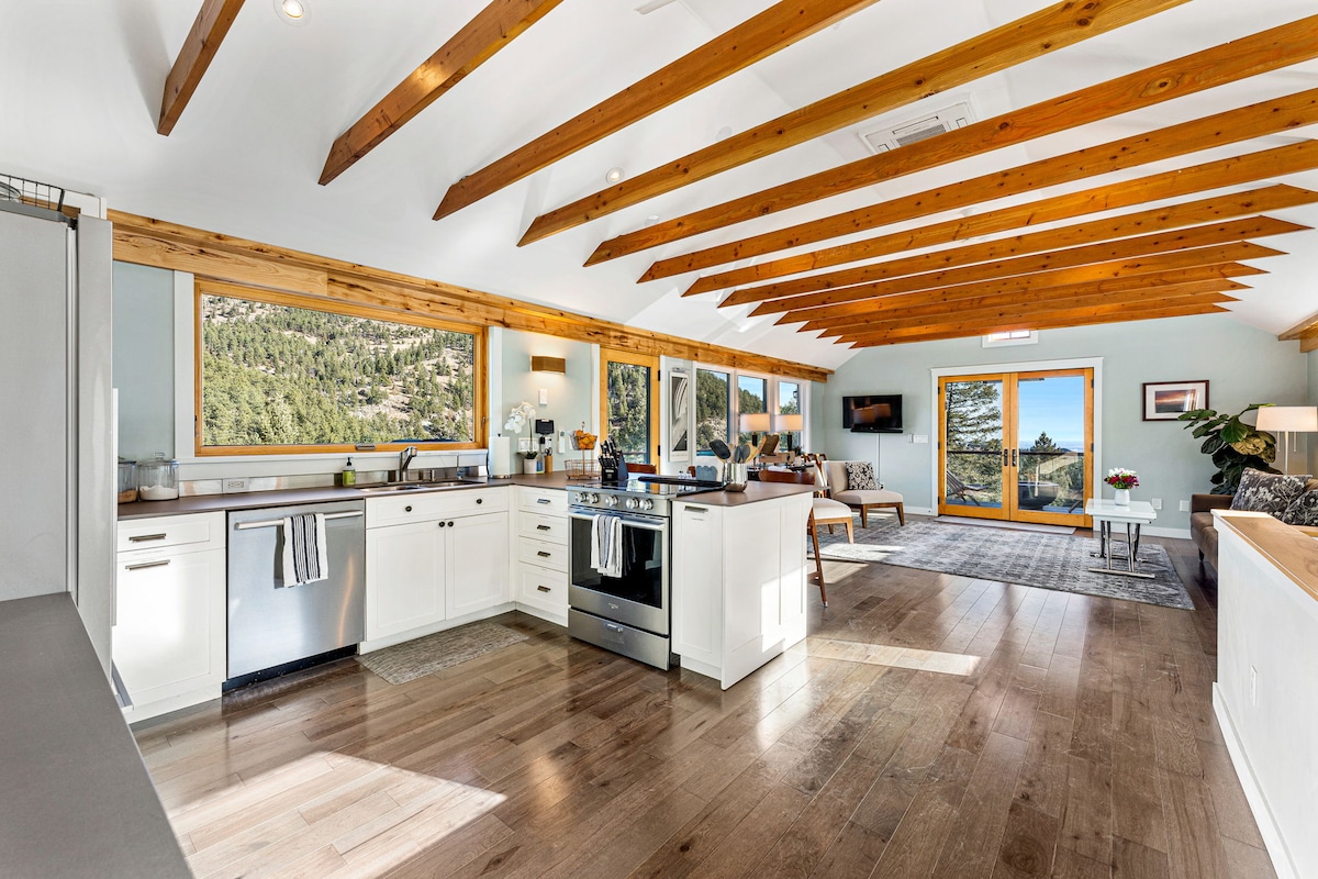 Permit #24-106357 You will feel worlds away on these 2 rolling acres. The cabin is a perfect mountain getaway to enjoy tranquil peace, yet only 3 minutes from I-70, restaurants, shops, trails, and beauty! The large sun room is the crowning glory of the cabin; it doesn't intrude on nature but is built with nature in mind. It places you in the middle of a wooded landscape boasting large windows all around that make you feel like you are outside in the snow, yet stay warm and cozy inside.