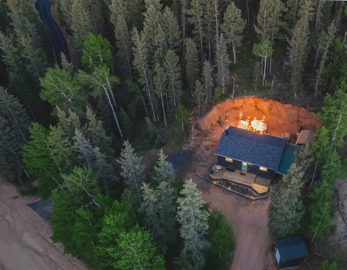 The Black Ridge Cabin - Your cozy mountain escape! 🗻Tucked in Colorado’s STUNNING Pikes Peak region 🛏️ Cozy 2BR w/queen beds on 1 private acre 🌌 Secluded hot tub under the stars 🔥 Indoor Fireplace + fast Starlink Wi-Fi 🍳 Stocked kitchen + washer/dryer 🌲Near hiking trails & hillside access with fenced yard 🚗 20 mins to Woodland Park, 2 hrs to DIA 🚶♂️ Walk to scenic Burgess Reservoir (no lake access) 🔥 Fire pit, outdoor dining, forest views 🅿️ Covered carport + driveway parking