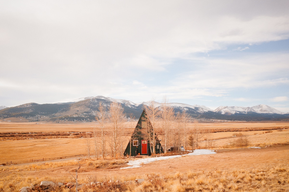 Relax & reconnect with nature in our off-grid, 100% solar & wind powered A-Frame cabin set 8,400' high in the beautiful foothills of the Wet Mountains! Enjoy awe-inspiring night skies, dramatic sunrises/sunsets, & quiet not found in the city. Retreat in the uniqueness of our A-Frame cabin w/ a loft, queen size bed, full bath w/ claw foot tub, full kitchen, & large deck for stargazing/yoga/chill time. Unplug from life's craziness to relax & enjoy! P.S. We're 21+ cannabis/mushroom friendly!🍄🤩