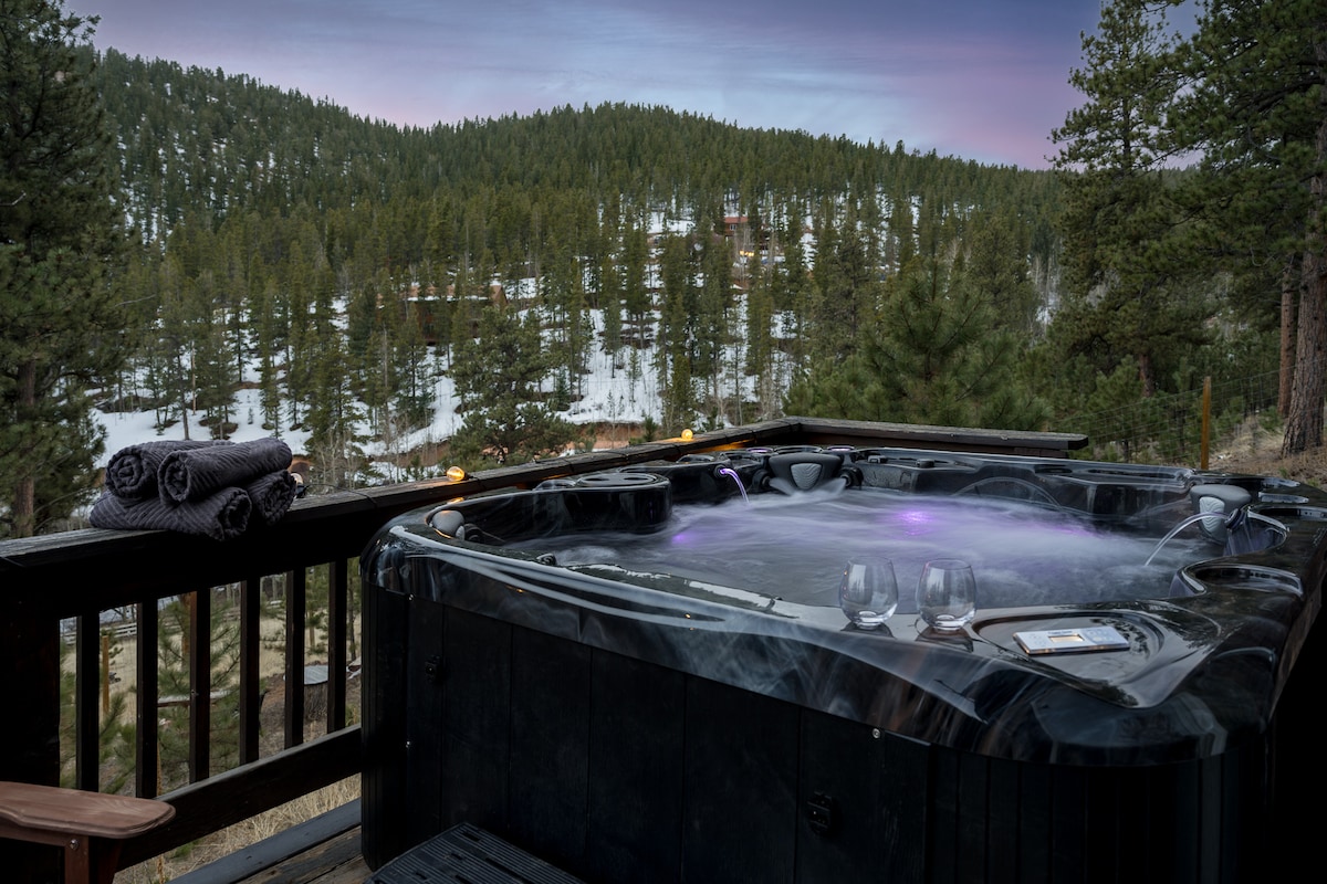 Looking for the perfect spot for a girls' trip, family vacation, or cozy getaway? 🤩 This modern mountain retreat is packed with stunning views, luxurious amenities, and endless entertainment—all just 40 minutes from Red Rocks & under an hour from Denver! 🏔️ 🌄 Breathtaking Mountain Views | 💦 8-Person Hot Tub | 🎥 80” Movie Theater w/ Reclining Sofas | 🎱 Game Room | 🍫 S’mores Bar | 🍷 Outdoor Cocktail Cabin | 🔥 Cozy Wood-Burning Fireplace + 🪵 Firewood Provided