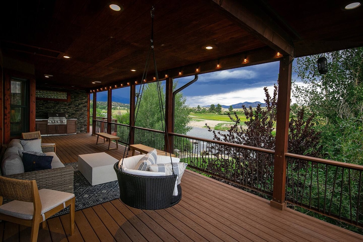 Welcome to your luxurious mountain retreat at Eagle Ridge! The Living Room is a stunning 1400 sf newly renovated home situated in a gated 43-acre property with panoramic views of Pikes Peak that will take your breath away. With a magnificent 1200 sf patio and access to private walking trails, this space has everything you need for a peaceful and rejuvenating vacation or retreat -- a hotel penthouse experience on ground level. The hot tub is filled with fresh water for every guest.