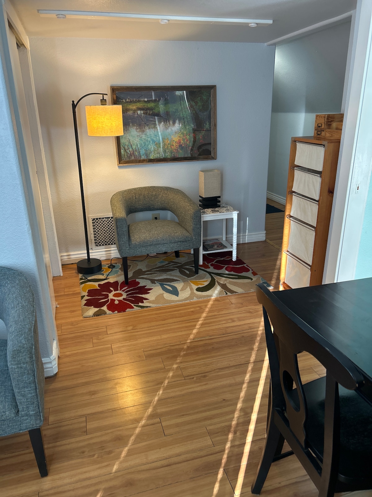 1 bedroom loft with full kitchenette. Close to DTC and only minutes from light rail, access to I-25, and everything Denver offers. It's the perfect place to rest your head after a hard day of work or travel. Our loft has a queen-sized bed, a small kitchenette with a fridge, microwave, electric stove for basic cooking, and complimentary coffee and tea. Full bath, TV with cables, access to the community gym and pool (seasonal: the pool is opened between Memorial Day - Labor Day) Free parking