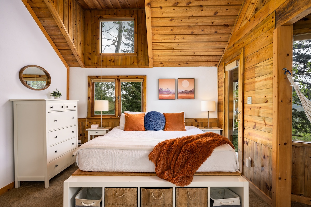 Explore 35+ wooded acres surrounded by national forest in the Rocky Mountains. A wonderful place for couples, friends, & solo travelers to relax or adventure in a modern cabin cut into a rock wall <15 mins from Salida, CO. We designed the Rock Room with 6 floor to ceiling windows and an automatic garage door that opens up to a rock wall and your private covered balcony which overlooks national forest on both sides. We've worked hard designing + curating the Rock Room. Would love to have you.