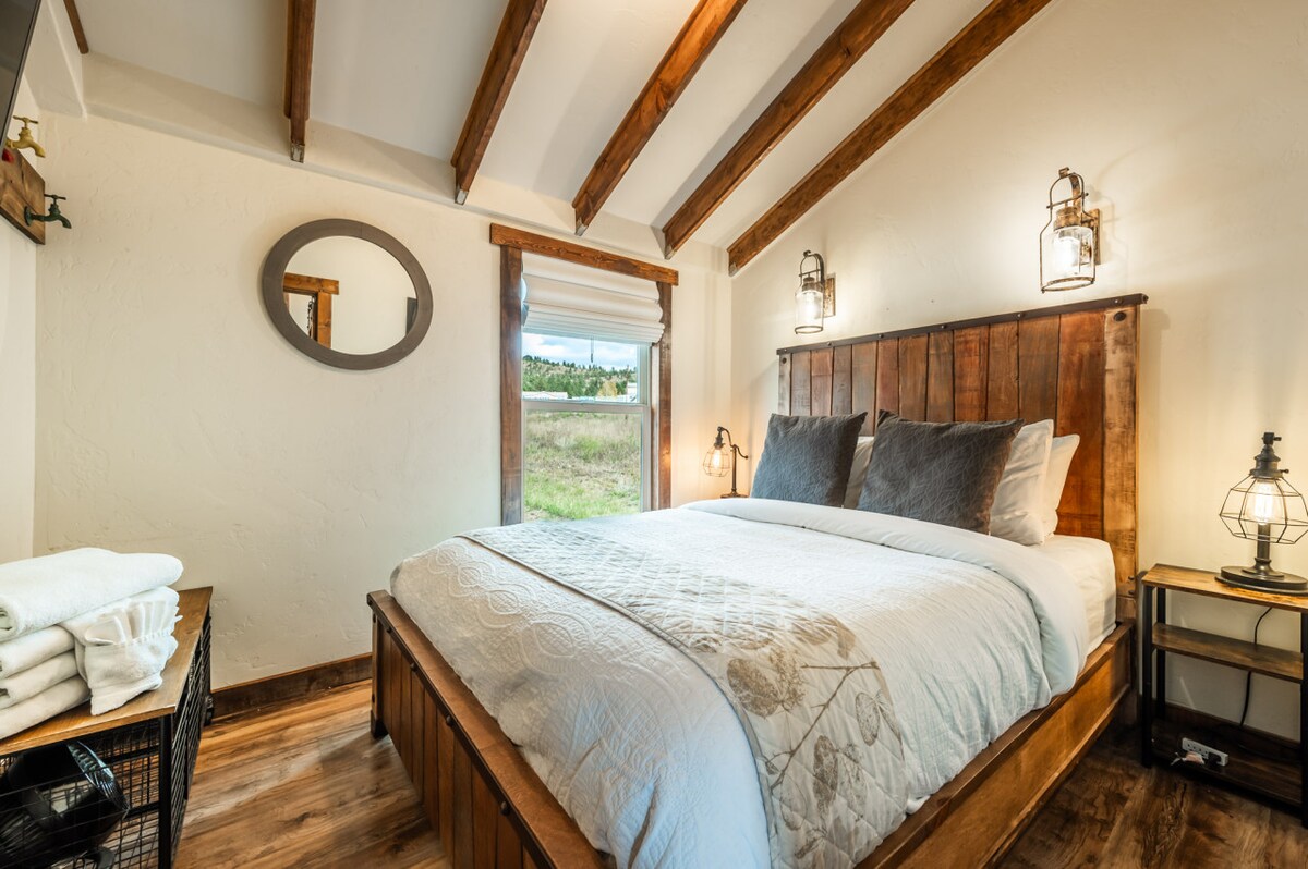 Historic Mountain Retreat at Eagle Ridge Escape to your private mountain retreat at Eagle Ridge, where rustic charm meets modern comfort. This stunning handcrafted 360 sq ft cabin, nestled on a gated 43-acre estate, offers breathtaking panoramic views of Pikes Peak and access to forest and meadow trails. It is the perfect place to celebrate birthdays, anniversaries, honeymoons, or simply enjoy a personal retreat surrounded by the beauty of Colorado.