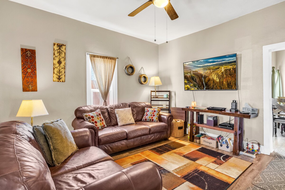 Welcome to our unique mountain retreat! This custom yurt is nestled directly between Salida and Monarch Mountain, making it a perfect base for your Colorado adventure. This 706 sq ft yurt boasts a full kitchen, bathroom with washer and dryer, and a separate bedroom under a beautiful tongue-in-groove ceiling that spirals up to reveal the dome, showcasing starry skies at night and ample natural light in the daytime. Enjoy a private outdoor space with wraparound deck & barrel sauna.