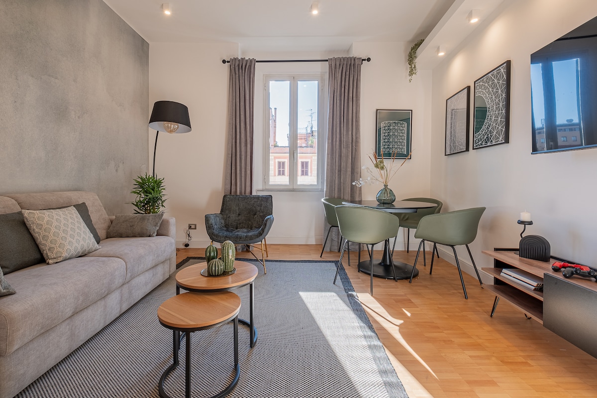 Luxury apartment just steps away from Piazza Campo de’ Fiori and Piazza Navona, nestled in the heart of Rome’s vibrant and historic center. This charming area is rich with colors, flavors, and centuries of history. The apartment features a spacious living room with a dining area, a fully equipped kitchen, a generous bedroom, and a private bathroom with a shower, accessible from the corridor. An elegant retreat in the very heart of Rome.