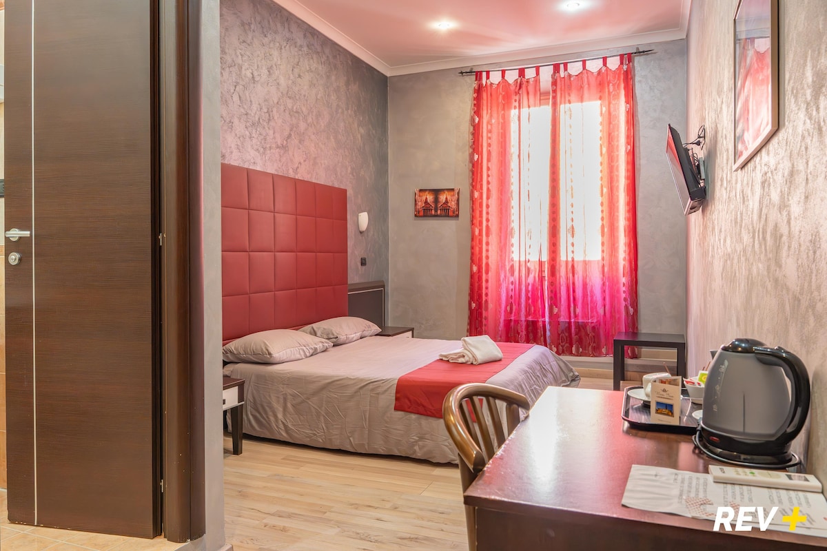 Elegantly designed for comfort and relaxation, the Charme Double Room features a cozy double bed and a full range of modern amenities. Enjoy climate control, smart home technology, a minibar, and a personal safe. For your convenience, the room includes a coffee and tea maker, hairdryer, and complimentary Wi-Fi. Stay entertained with an LCD TV offering international channels. A spacious wardrobe adds to the comfort, making it an ideal choice for both short and extended stays.