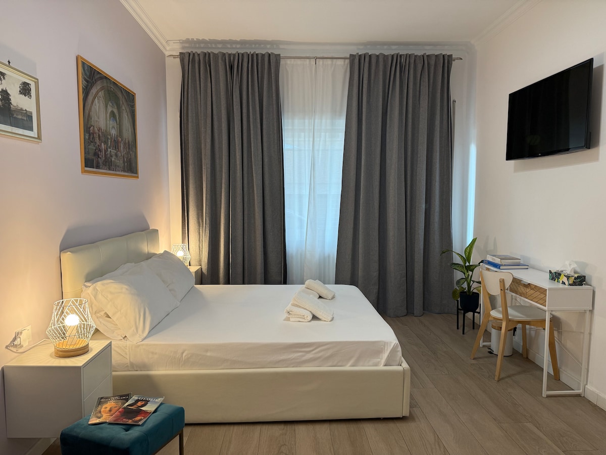 Casa Luigi apartment is located 5 minutes from the Vatican in the Prati district, near Via Cola di Rienzo, shopping and restaurant area, 10 minutes from the center. Suitable for couples and families with children. Recently renovated, elegantly furnished with king size beds, equipped with a hydromassage tub with waterfall shower, air conditioning, independent heating. Rome Boutique Apartments has other apartments in the same building, advertised on Airbnb.