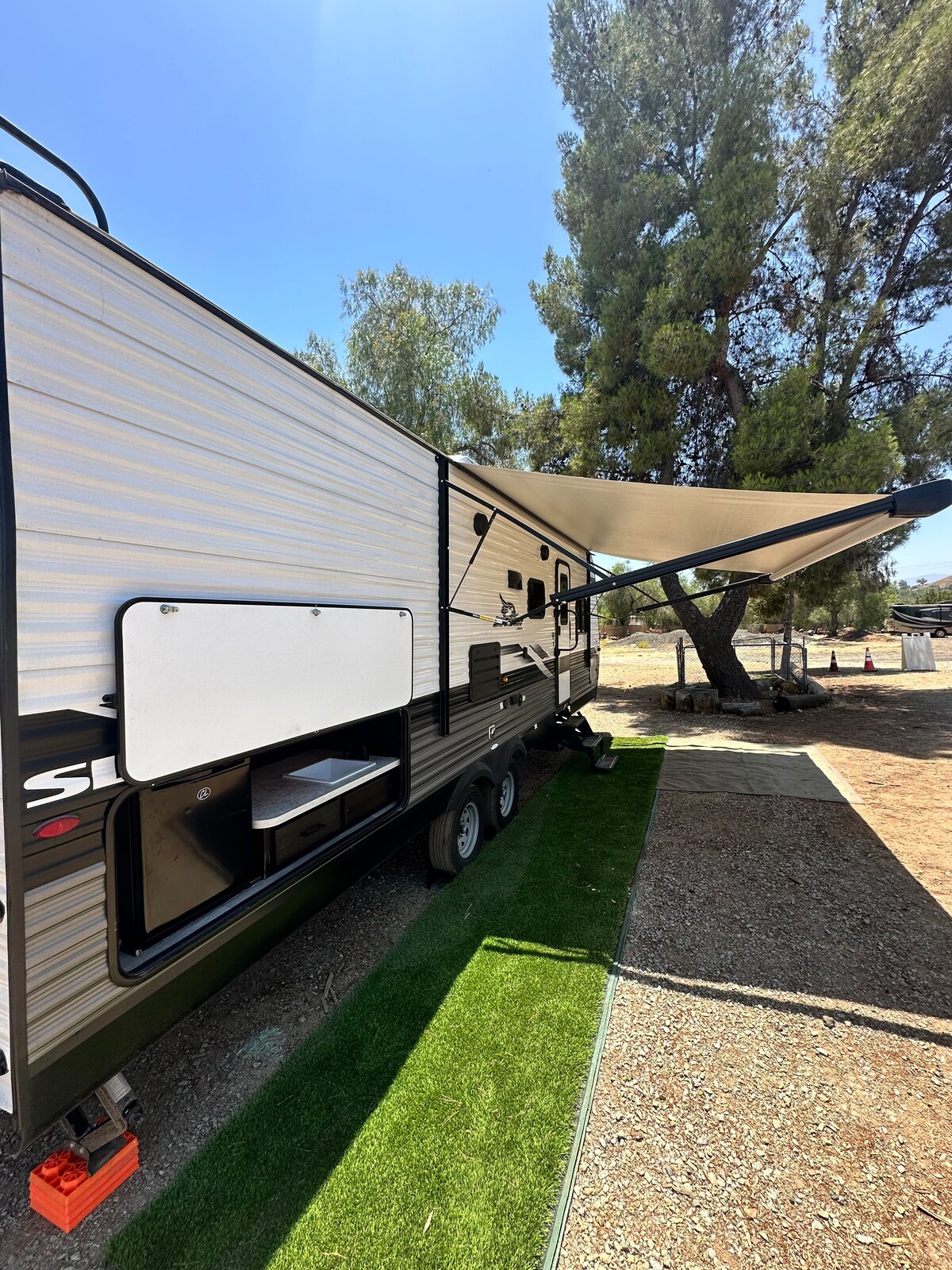 Cool new RV trailer in a sweet spot with a good vibe. Centrally located off the State Hwy 74 in Perris Meadowbrooke area in a safe and secure unique 5 acre RV Business compound. Small working family business with friendly staff. Lake RV stores, rents and sells RV's all over this unique 5 acre property. Friendly staff will leave you be or be available to teach you as much as you want to know about RV's. Easy access in and out with easy parking next to the trailer. Onsite overnight security.