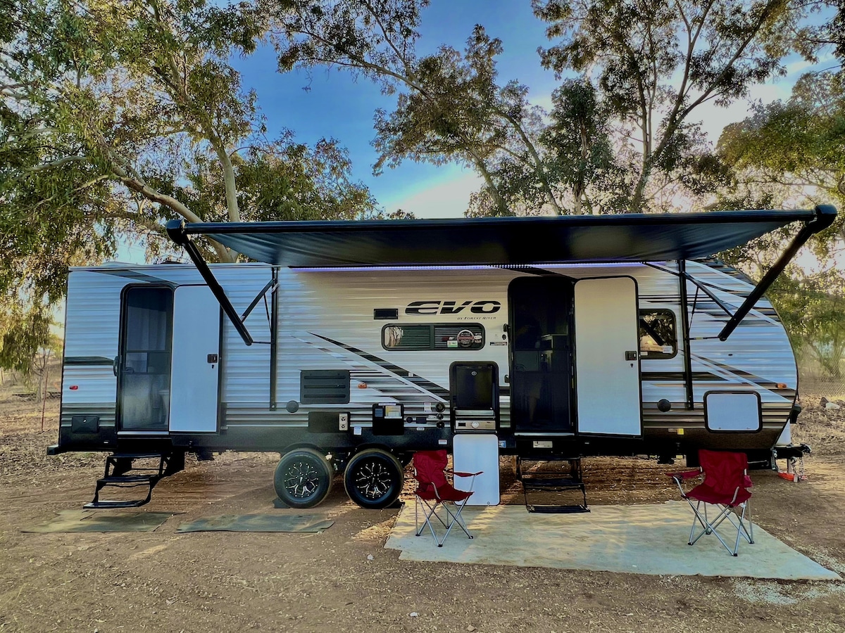 Enjoy a comfortable getaway in our beautiful 2 bedroom, 1.5 bath, 5th wheel RV. There's a King size bed in the master bedroom, a bath tub/shower, nice TV's throughout as well as a fire place in each room. It also has central heating and air conditioning. We are near downtown riverside with restaurants, bars and night life, UC Riverside University is minutes away. Chicago's Portillos hot dogs and Italian beefs or Chicago deep dish pizza also close by. Look no further, book today!