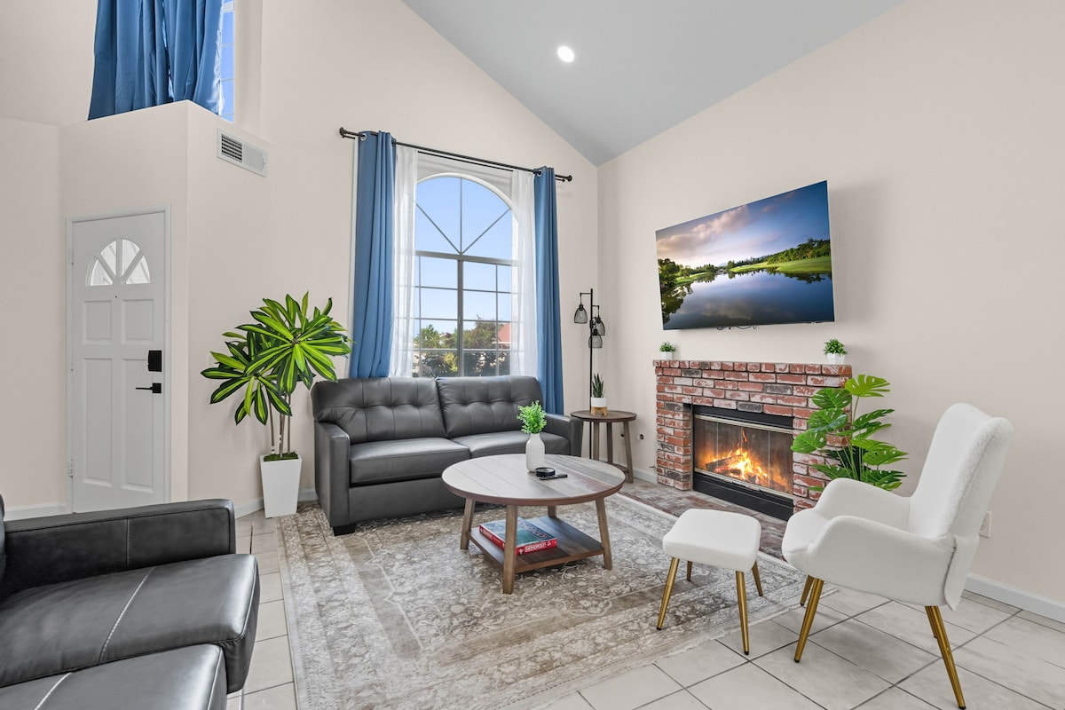 Welcome to our exquisite Riverside retreat, where luxury meets family fun! Here's what makes our place truly special: 🔥 Cozy Fireplace for Chilly Evenings 🌴 Tropical Oasis with a Sparkling Pool 🌟 Jacuzzi Bliss under the Stars ⛳ Mini Golf Extravaganza. 🏡 Spacious and Clean Rooms 📍 Centrally Located Convenience: Downtown Riverside, UCR, NOS Center, 210 Freeway, Yaamava, and local shops *~Fun-Filled Family Environment!~* Book now!