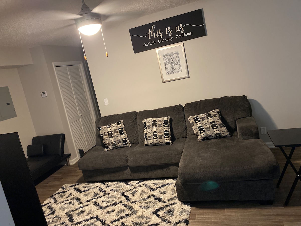 Enjoy peace of mind knowing that what you see is what you will actually get in this upscale apartment designed with modern pieces and quality, comfortable furniture, located just outside Ft. Gordon. You can get anywhere you need with ease. Only 5 minutes from the mall and shopping centers, 15 minutes to the Masters, and 20 minutes to downtown Augusta. If that wasn't enough, take advantage of the fully stocked kitchen, FREE blazing fast wifi and cable and streaming services.
