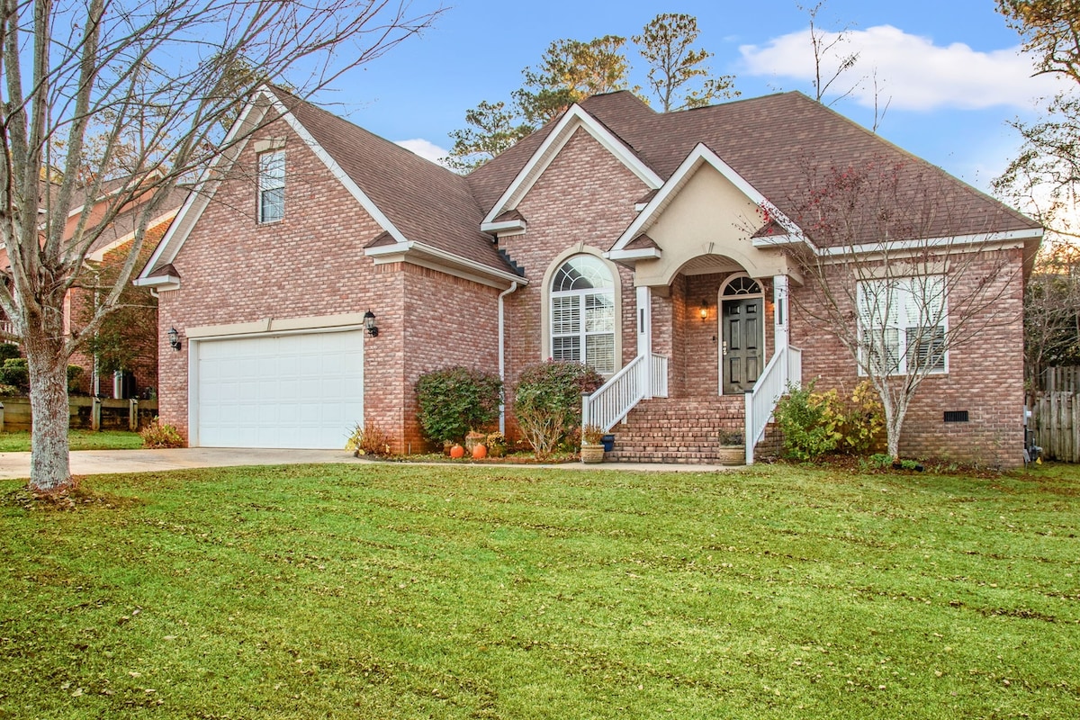 You will love our location! Our spacious brick ranch is on a beautiful street, 1.5 miles from the Masters, minutes from I-20, stores and the best collection of restaurants. Easy ride to Fort Gordon, Plant Vogtle, Augusta University and north Augusta. Our house is clean, quiet, private and cozy. It has 3 bedrooms, 2.5 baths, a living rm, a dining rm, a kitchen and a laundry rm. There are 1 King & 2 queen beds & 1 55" smart TV. Come with big yards and porches, jetted tub, WiFi & Parking.
