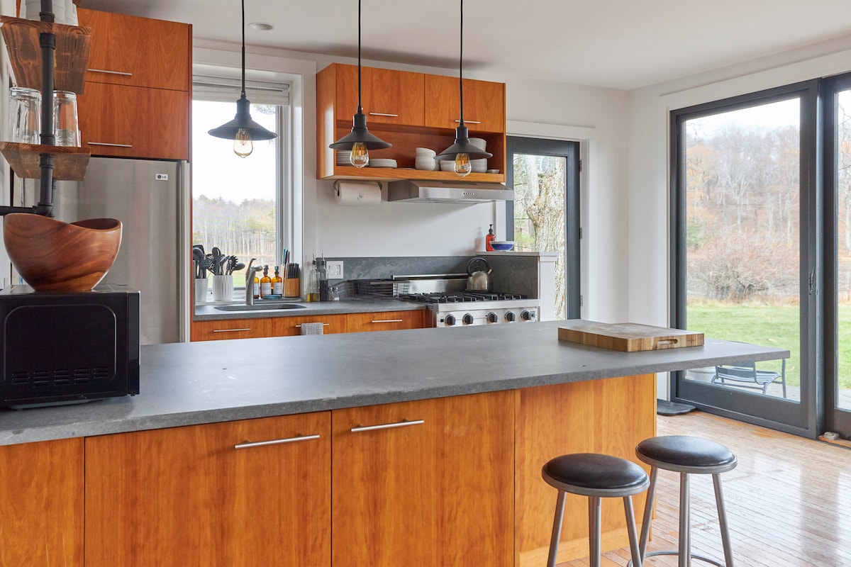 a bright serene space built by locals on the property we live on. we are in what we think is the most beautiful region of the Hudson River Valley - surrounded by pastoral beauty and dramatic landscapes. quaint yet cultured towns in all directions. please read the entire description & rules before booking • beyond 2 guests, the rate adds 50$/night/per person • please add dogs (2 max. 50$/per dog) when booking (no cats) • we look forward to having you here!