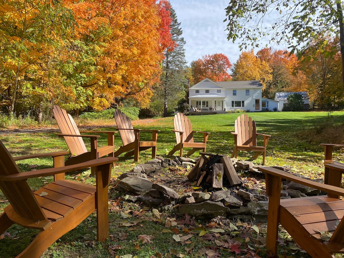 Escape to Falls Road – a private mid-century country home nestled on the edge of 20 acres of preserved woodlands. Our home has been thoughtfully updated, featuring an array of resort quality amenities as well as a wood-burning fireplace, soaking tub, outdoor shower, projector & a 4ft deep cedar hot tub to unwind in. The yard includes a stock tank plunge pool, deck, grill, and fire pit. Located just over 2 hours from NYC/Boston and only 8 miles from Hudson center. Minutes to hiking, golf, & more!