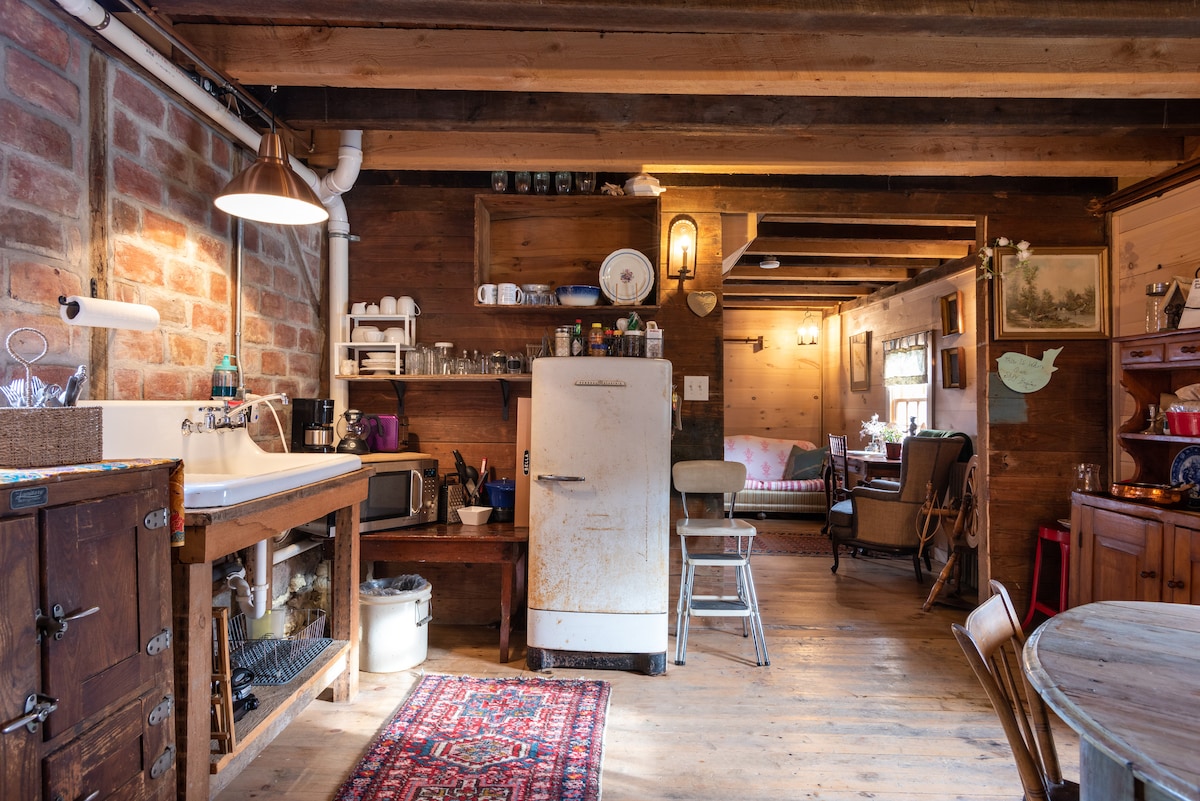 The Owls Nest Cabin is ~ 2 hours from NYC yet just minutes to popular cities like Hudson/Catskill. An original Summer Kitchen circa 1840, it's been restored into a private 1 Bed/1Bath cabin with a claw foot tub, vintage kitchen, wood/brick walls, Vermont Castings gas fireplace, antiques & charm! Note: several historic barns share the land, situated on country road adjacent to historic registered farmhouse. Quintessential Hudson Valley. Hot tub, small natural swimming/dipping holes in creek