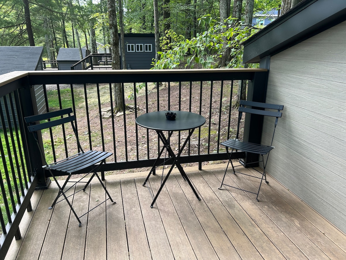 Welcome to Vista Lodge! We are conveniently located on Route 487 between Stillwater and Benton PA. Our "Tiny House" lodges have a Living Room/Dining Room/ Kitchenette featuring mini-fridge, microwave, cook top stove, coffee pot & toaster. Our lodges are designed for full comfort and ease. Cable TV and wi-fi is also included. There is a queen-size bed in the Bedroom and the futon folds out to a Queen-size Bed. Booking constitutes accepting Terms & Conditions.