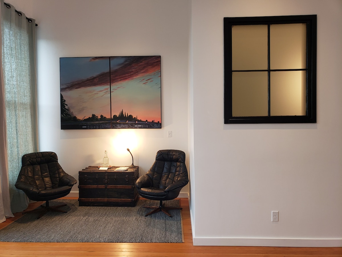 Starting $169/night | No minimum stay | 21+ Comfortably above the slow-moving fray of sundry farm vehicles, saunter into elegant Scandinavian simplicity. Pure white walls are offset by jet black window trim, virgin Douglas fir floors and accented with paintings as surreal as the circumstance. A wall of insulated floor to ceiling windows overlooking Waitsburg’s historic Main Street and nearby wheat fields offers the best show in town. Refresh yourself in the spacious day lit shower adorned with handmade Portuguese terracotta tiles. Read a poem. Drift to sleep in a king-sized bed. Wake rejuvenated and awash in sunrise light. Or draw the drapes if you prefer mechanical clocks. --- Waitsburg is a historic hamlet located on the delta of the Touchet River and Coppei Creek, 14 miles from Walla Walla Regional Airport and 20 miles northeast of Walla Walla. This is an outdoor enthusiast's paradise nestled in rolling wheat fields near the Blue Mountain foothills. With myriad outdoor activities within striking distance year-round, there are many quiet moments but rarely a dull one.