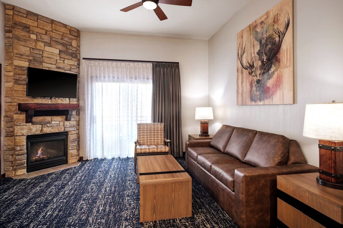 Nestled in Wisconsin's scenic wilderness, Club Wyndham Glacier Canyon blends rustic charm with modern flair, featuring timber furnishings and stacked stone accents for a cozy, lodge-inspired vibe. Just steps away, Wilderness Resort beckons with nine thrilling waterparks, four arcades, and a host of amenities. Discover local adventures like wineries, golf courses, casinos, wildlife parks, hiking trails, horseback riding, carriage tours, zip lining, go-karts, and magic shows.