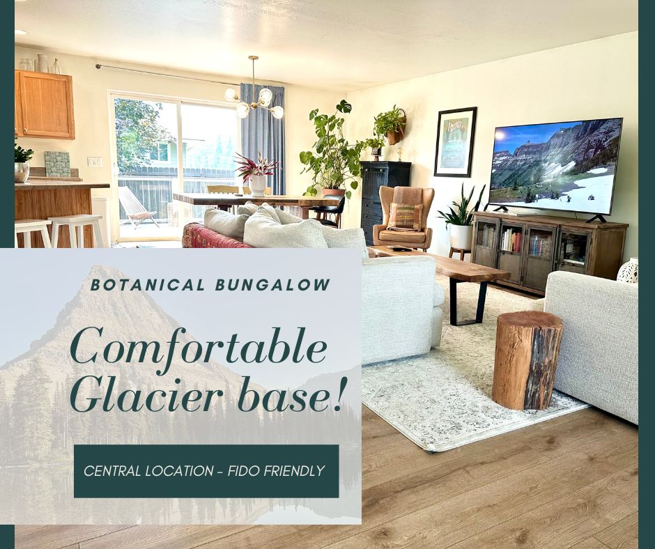 This cozy home is our “Smokey the Bear” cabin. There is a driveway that can fit 2 cars next to the home. “Smokey” is just a 7-minute drive to the main entrance to Glacier Park. The home sleeps 6 adults and 2 kids comfortably. (8 allowed if at least 2 of the guests are young kids.) The home has a covered deck, full-home AC and heating, gas fireplace, back yard with fire pit, desk/work area, and pull-out sofa if needed. We will give an additional discount for booking for 2 months or more.