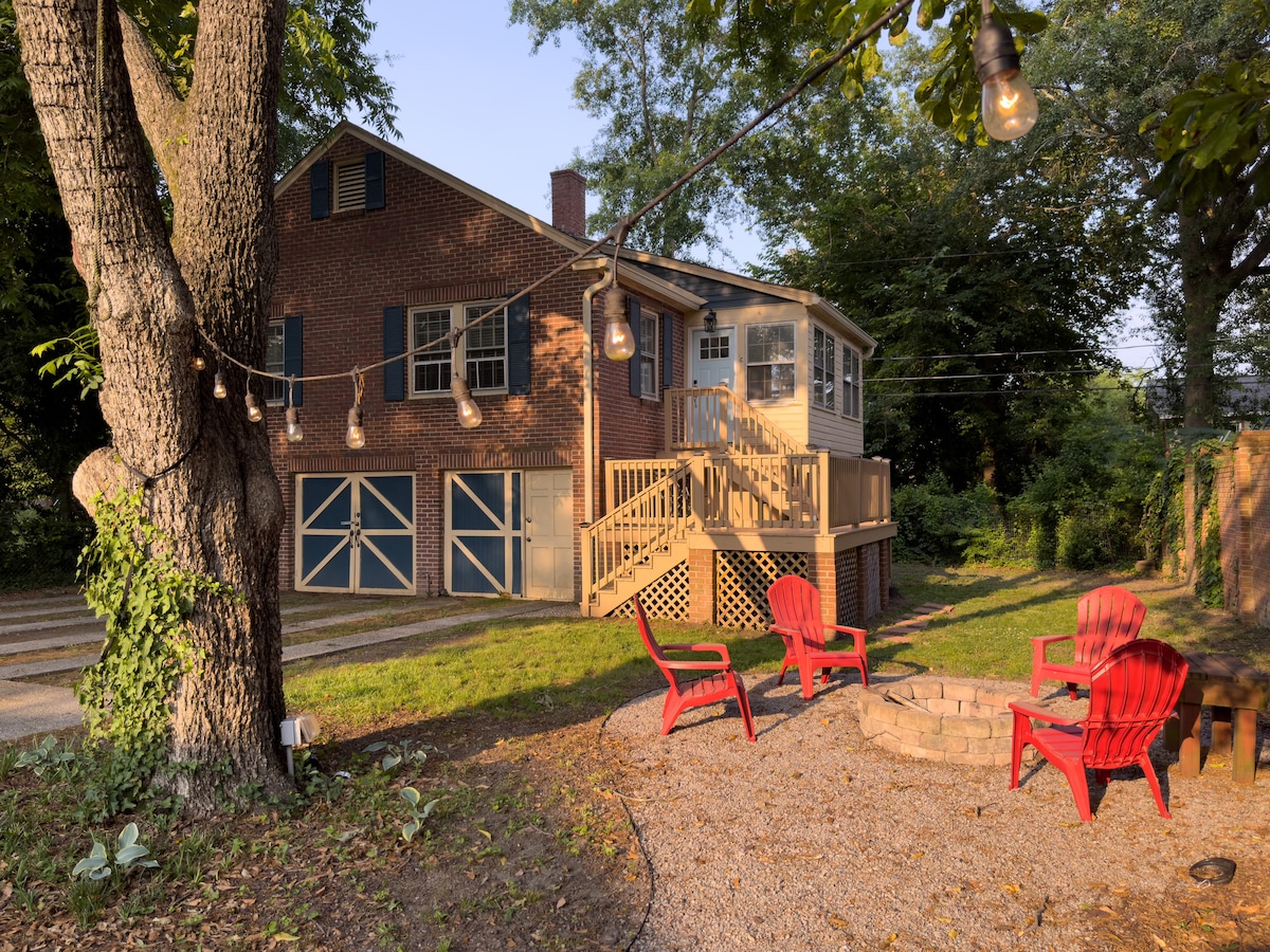 Kick back and relax in this calming space or walk/bike to everything in NoMa and the Main street district from this stylish, centrally located bungalow. When staying in, enjoy front porch sitting in t rocking chairs, or hang out in one of the two back yard spaces, a patio with gas fire pit & grill & covered couch area too Bedrooms with queen beds and comfy bedding in each room . Home comfortably sleeps 4. The kitchen is spacious and has all you need to cook if that's your ja