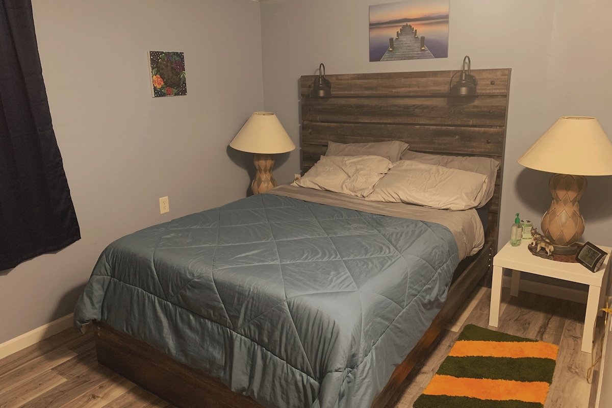 Entire lower level of home with 2 beautiful large bedrooms, spacious bathroom with lots of hot water in shower! Beautiful fireplace in gorgeous living area with dining area. Kitchenette includes refrigerator, toaster oven, microwave and Keurig coffee maker This lower level apartment is light and airy with large windows in each room! Bedrooms include televisions along with big screen TV in living area. Private outdoor sitting area with fire pit to enjoy your evenings!