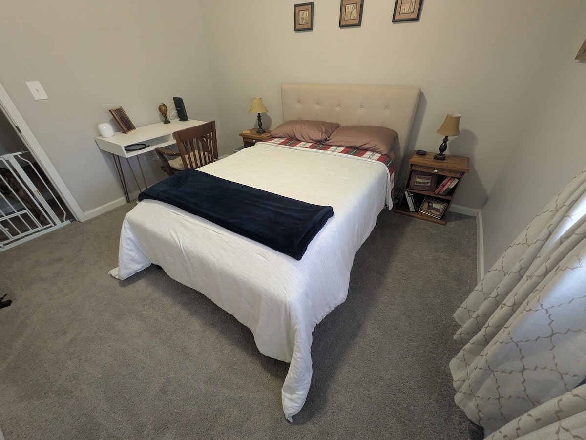 The guest suite is located on the lower level of our tri-level home, with a private driveway, patio, and entrance. The queen bed and pull-out sofa sleep 4 guests comfortably. It is within 15 minutes of downtown, which is home to USC and the Colonial Life Arena. It is 10 minutes from Lake Murray, Riverbanks Zoo, shopping, movies, and great dining experiences. This suite is spacious and cozy. It's great for business travelers, traveling nurses, and small groups looking to enjoy local events.