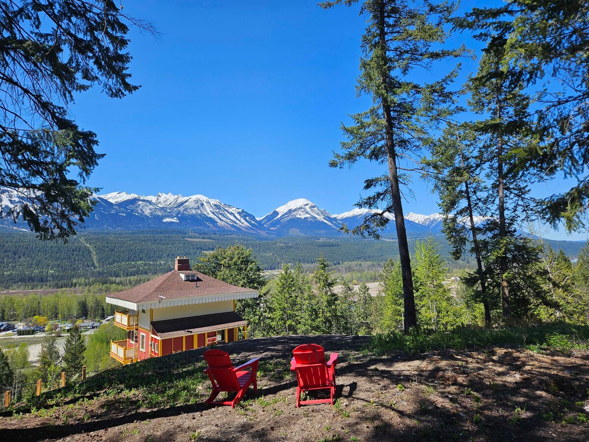 Beautiful 2400 sq foot log chalet with spectacular mountain views! This secluded retreat is on 3.75 acres in the mountains near Golden and Kicking Horse Ski Resort. Special touches and amenities throughout will ensure couples, families, and friends have an enjoyable stay at any time of the year. BC Provincial registration number: H768958222