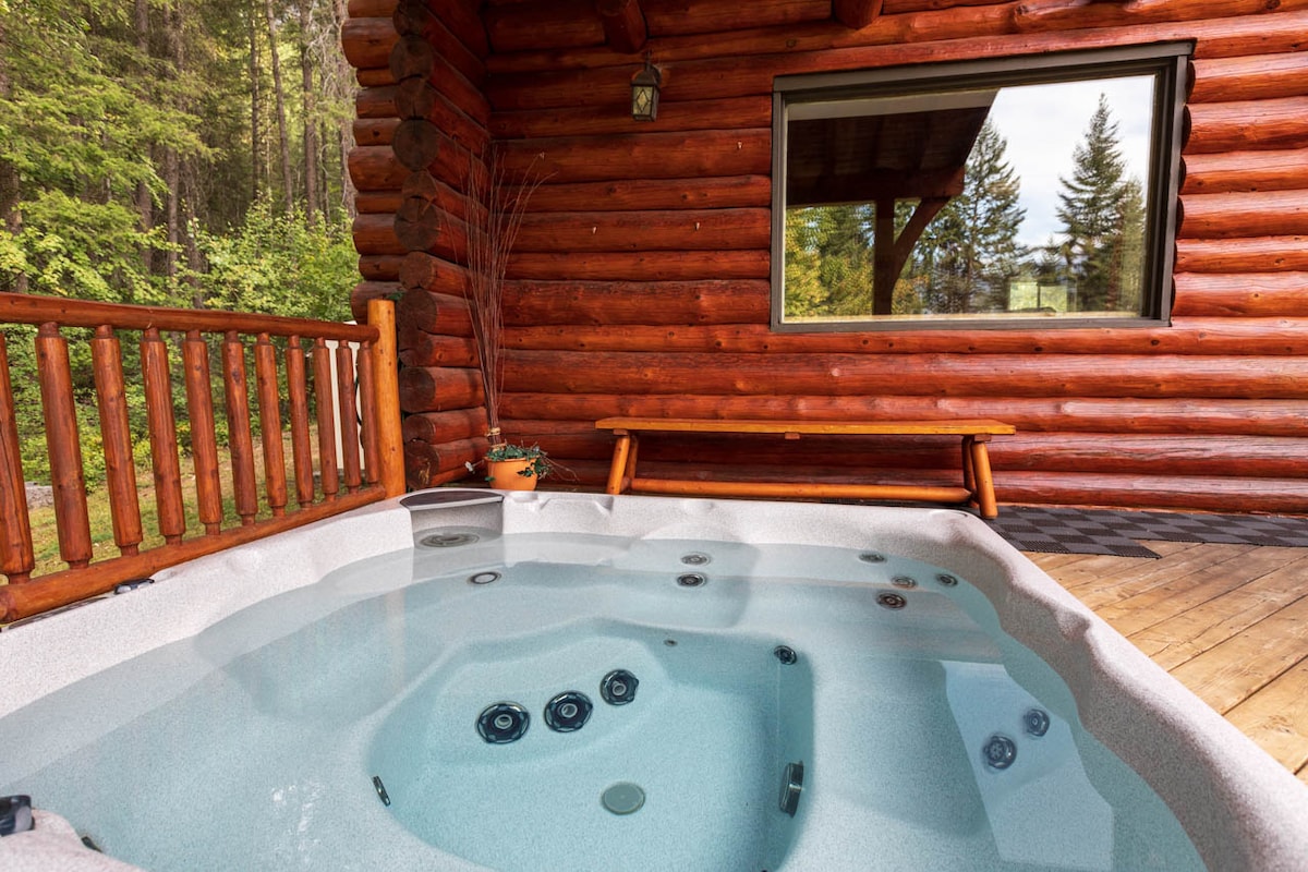 整套小木屋-热水浴缸和迷人的景观。