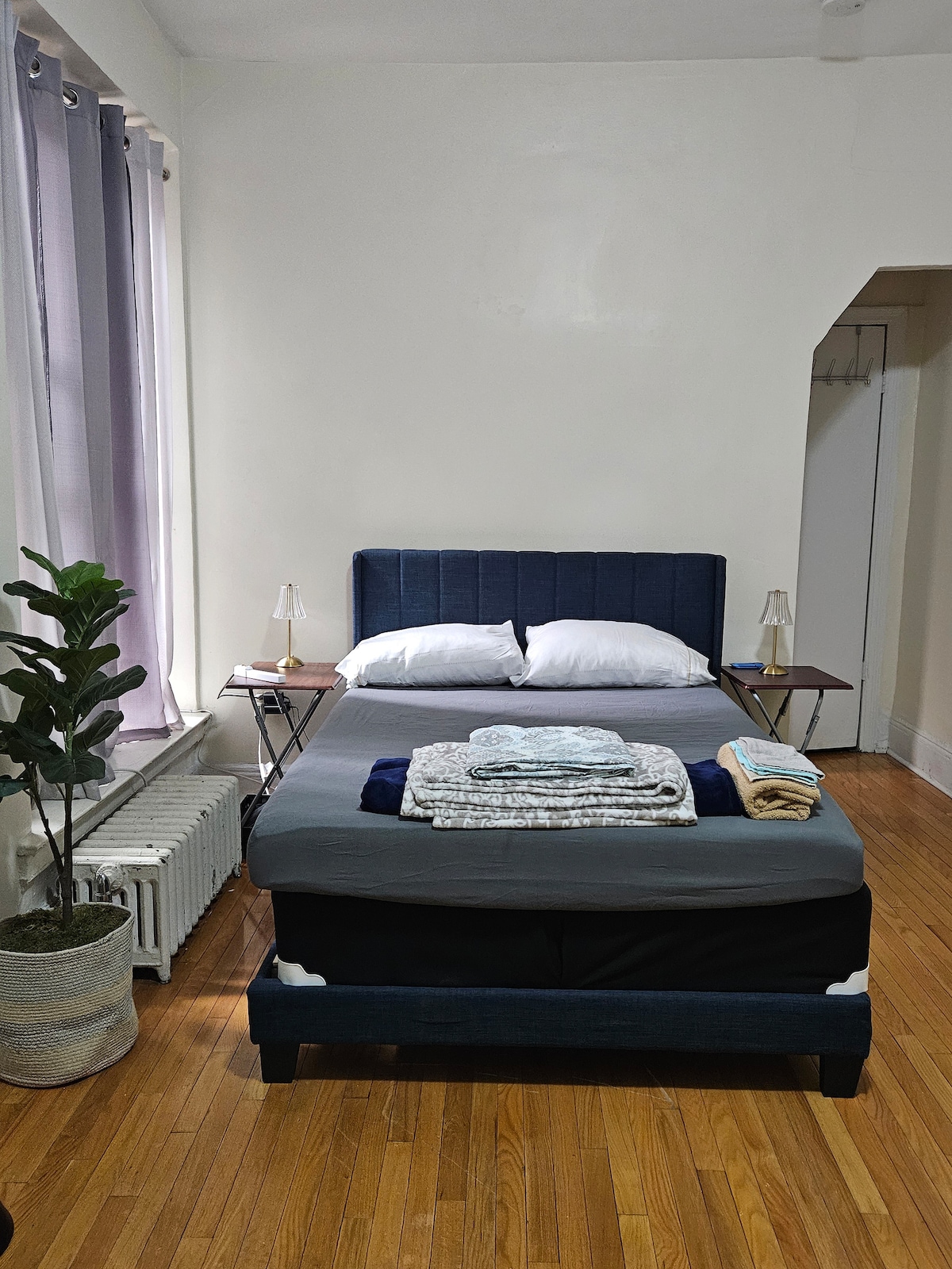 Welcome to our cozy studio retreat! Nestled in a vibrant neighborhood, our thoughtfully designed space offers comfort and style. Enjoy a restful night's sleep in the plush bed, unwind in the modern living area, and savor morning coffee on the private balcony. With convenient access to local attractions and amenities, our studio is the perfect base for your stay only few minutes walk from Central Park and major subway stations. Book now for a memorable experience in the heart of new city.