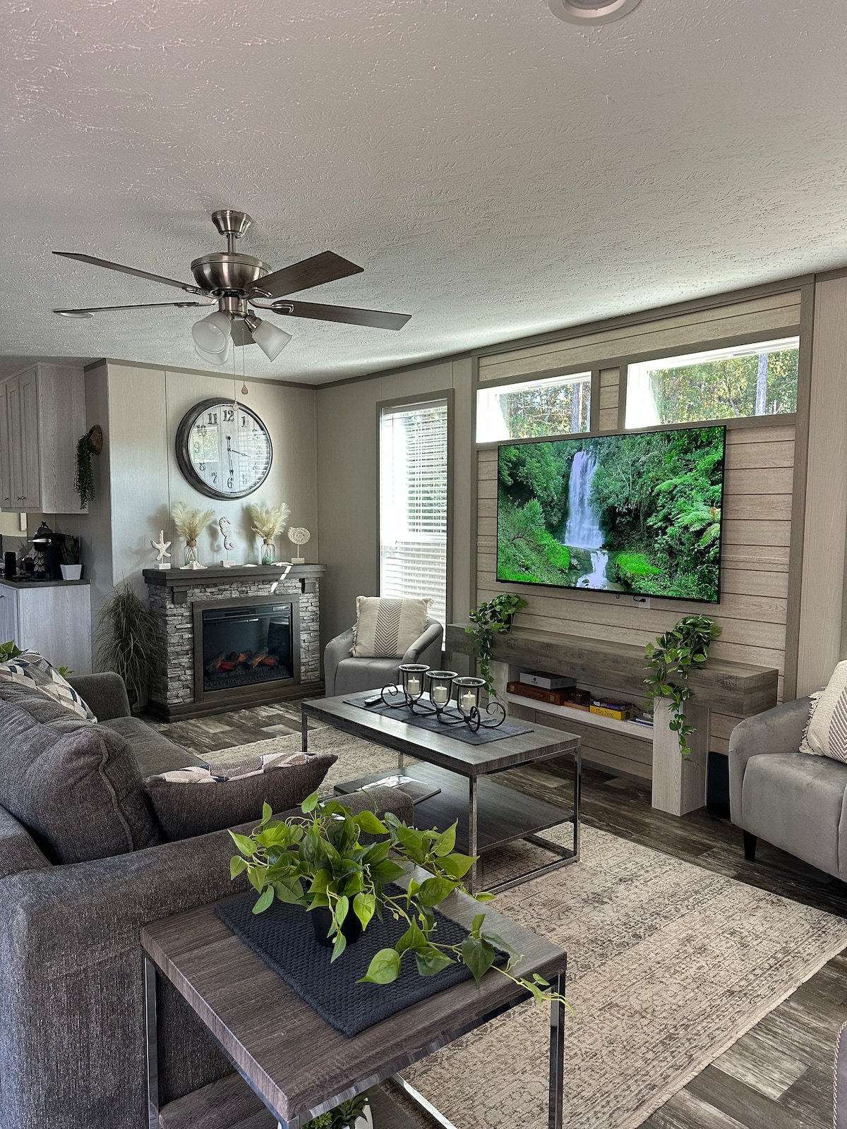 This spacious guesthouse is equipped for longer stays with all of the desirable amenities. The Brunswick Cove is spacious, peaceful and designed for a comfortable stay with a plush king sized bed, queen sofa living room sleeper, fireplace and a vintage coastal aesthetic. It is centrally located 0.5 mile from Main Street in Shallotte, where delicious local eateries, spirits and entertainment are abundant. The best feature is that it’s 15 minutes from Sunset, Holden and Ocean Isle Beach!