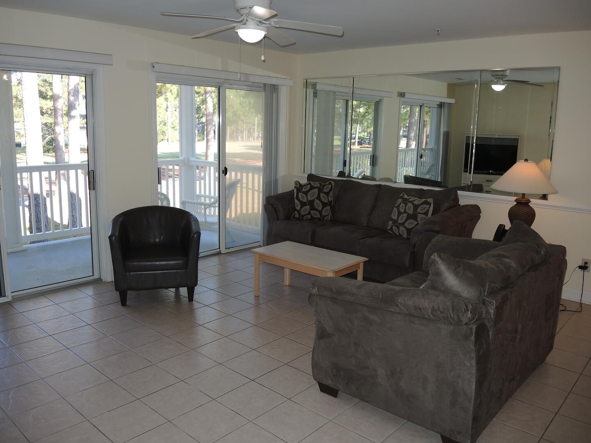 You will be close to everything. Brunswick Plantation 27 hole golf course in backyard along w club house grill & bar. 8 miles from Beach. No Myrtle Beach is 8/9 miles away w amazing dining choices. Loads of golf courses just a quick drive to in North Carolina & South Carolina. Outlet malls for designer/name brand shopping. Very low cleaning fee. 2 bedroom 2 full bathrooms. Huge lvgrm/kitchen & outside deck w amazing views. Fitness center w outdoor pool & hot tub!