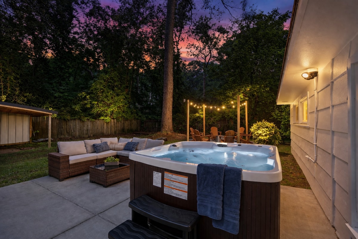 Welcome to The Benning Oasis Gateway! Cook, laugh, and connect in the open kitchen, then fire up the charcoal & gas grills in the spacious backyard or unwind in the 8-person jacuzzi. Inside, the fun never stops—pool, air hockey, shuffleboard, poker, dominoes, 2 arcades, 70" TV, Bluetooth sound bar & more! Need to work? We’ve got a fully equipped workstation. Perfect for families to relax or groups exploring Columbus. Comfort, entertainment, and unforgettable memories await!