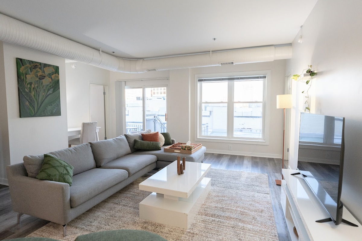 Welcome to this spacious 7th floor Modern Style Apartment with city views comes fully furnished with all the amenities: - Professionally cleaned between every guest - Contactless self check in - On-site free garage parking (Save $44 a day booking with us) - Walking distance from all downtown has to offer - Attached to the Indianapolis Skywalk - Pull-Out queen sofa bed - Stocked kitchen - 60" Roku Smart TV - Roku Smart TV in bedroom - Workspace - In unit washer/dryer - 500+ MBPS Wifi - 24/7 Gym