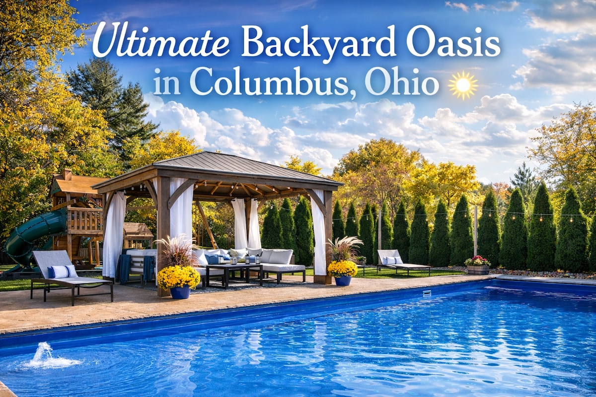 Amazing Pool! Hot Tub! Outdoor Oasis, 2 King bed suites, Workout room, Office/poker room, Kids Playground, Movie Theater, Chefs kitchen, Washer/Dryer, Full Dining room, Sleeps 12, and a great location! Over 4,100 SqFt on private 1 acre lot -The Horseshoe (Ohio Stadium/OSU)- 12 Minutes -Nationwide Arena (Blue Jackets)- 13 Minutes -Muirfield Village Golf Club (Memorial Tournament)- 17 Minutes -The Short North/Downtown/Convention center- 15 Minutes -Lower-dot-com Field (Columbus Crew)- 14 Minutes