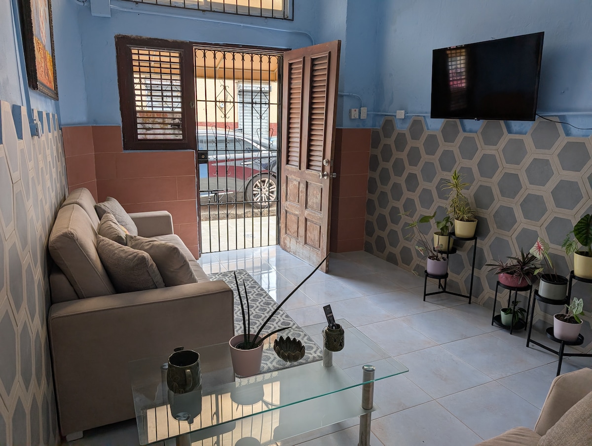 Hermoso Apartamento completo y privado en el centro de la Ciudad Colonial. 3 er Piso con galería, y bella vista a la Zona Colonial. Dispone de una bellísima terraza techada con vista al Mar Caribe y Zona Colonial. Calle muy tranquila y cerca de las atracciones turísticas más famosas del país. Deléitate con nuestro espacio para descansar, y explora toda la zona que tendrás cerca de nuestro apartamento.
