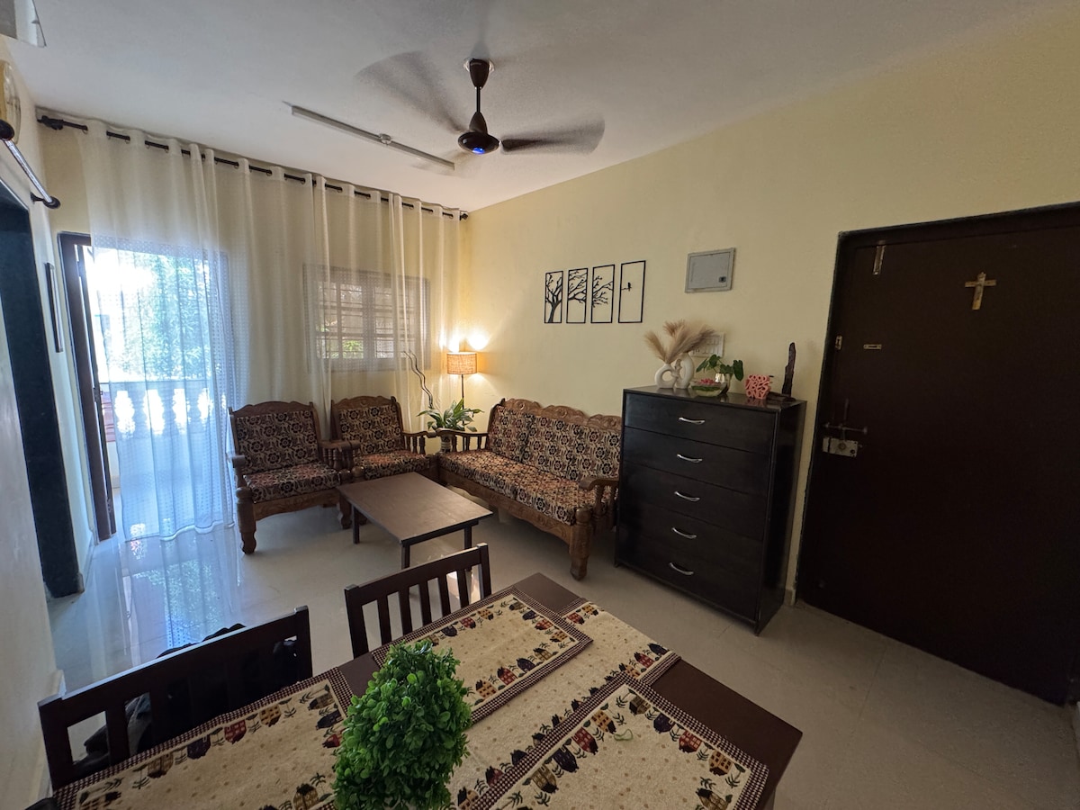 A super comfy, clean, sanitized Air Conditioned, fully furnished apartment with a solar heater setup, close to the beaches of Varca(400 Mtrs away!!) Equipped with super comfy bedding to ensure you the best night of sleep. A huge balcony overlooking the green fields and a well equipped kitchen to cook meals. Fresh linen , towels and toiletries are offered on every stay. A dedicated 300Mbps internet connection to ensure a perfect workation. Note: Cleaning is included once every 3 nights stay.