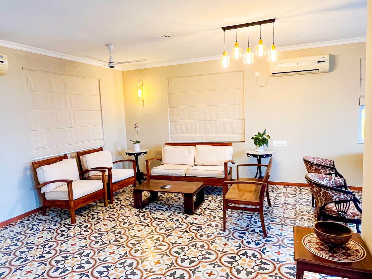 SUMMER DISCOUNT OF 20% !!! (min 2 days stay) IDEAL for Meetings|Trainings|Wedding Functions|Reunion|Classes|FAMILY STAYS. Why Guests ❤️this stay: 1)SET BREAKFAST & THALI Veg/NVeg Lunch/Dinner (CHARGEABLE) 2)SELF CHECK IN|Wi-Fi|power backup 3)Well equipped with amenities/essentials/games. 4)All Bedrooms w/attached bath,AC,TV 5)Convenient Location. COME, RELAX & TAKE AWAY GOLDEN MEMORIES FOR A LIFETIME!!