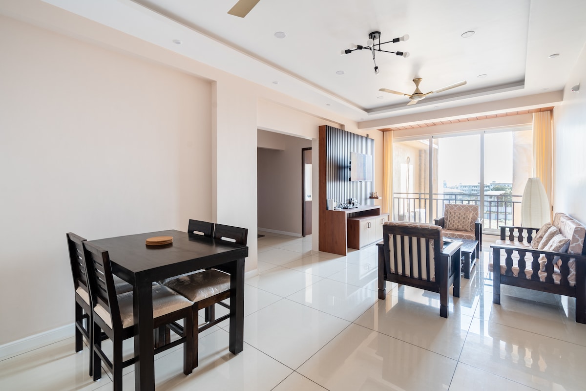 Relax and feel peace in you! A perfect family getaway. Come and stay with us to feel even better than at home. Enjoy the uninterrupted wifi connectivity with a complete power back up.. Come in as guests & Leave as family. Accommodating your peace of mind in the cozy AC apartment!Prepare a quick snack or head out to the beach shacks..Jump in the pool or have a dip in d sea 🌊 Go for a run at the beach or hit the fully equipped gym ! Explore the uniqueness of South Goa and have a peaceful stay 😎