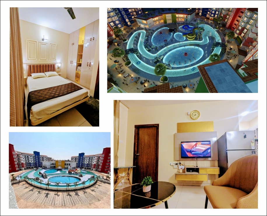 A Luxuries Holiday Homes/Apartment for your holiday vacation in Goa! A perfect cozy, peaceful and relaxing stay for a Couple and Family in prime coastal area of South Goa's famous Colva Beach. Our beach side apartment complex is power packed with amenities such as Hi Speed internet, Power Backup, Parking, Gated complex , 24 hrs security, Clubhouse, Gym and Swimming pool. The apartment also has a fully functional kitchen and AC in both the rooms. Grocery, Beach shacks, Restro & Café nearby.