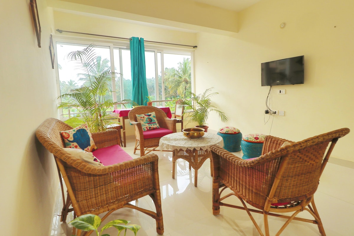 Relax and unwind at this tastefully designed apartment in the beautiful village of Colva. Enjoy the scenic views of the swaying coconut palms and the lush green fields, as you enjoy the ocean breeze. The beach is a 5 minute leisurely walk from the apartment. The main Colva road is a short walk away from the apartment complex and is home to many popular restaurants, pubs and grocery stores.