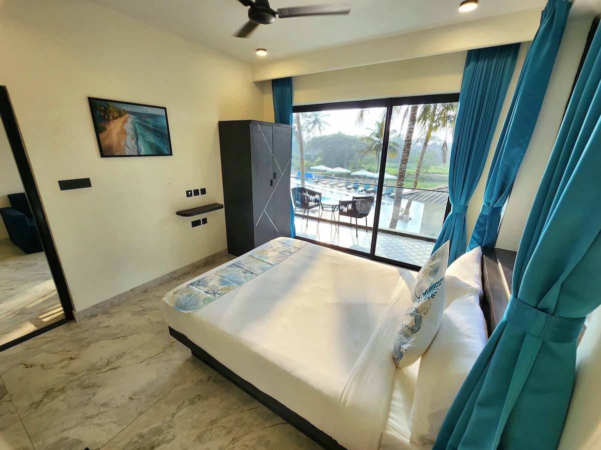 1BHK w/ Pool @ Lykke, 2-min drive to Colva Beach
