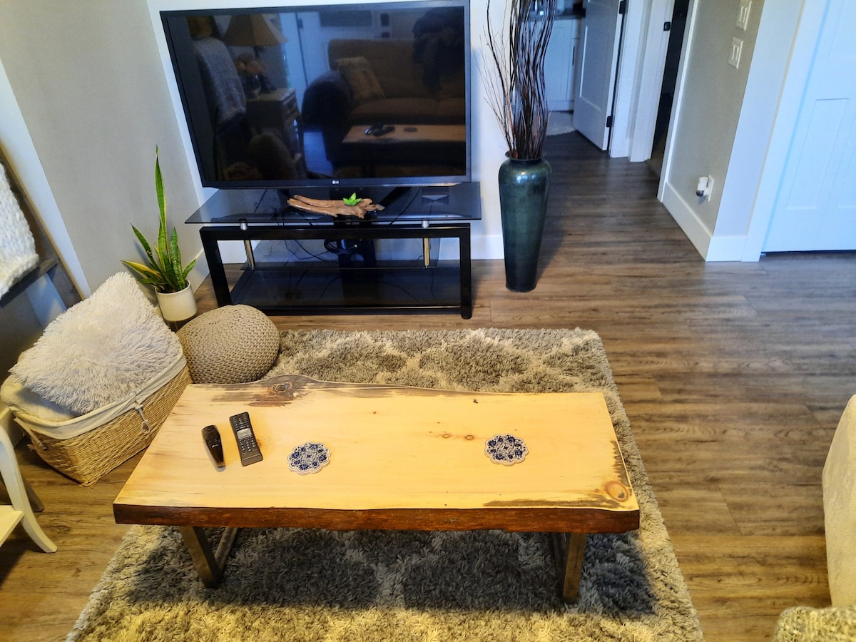 Spacious and private ground-level suite on 2.5 acres bordering forest and a creek in serene Shirley. Conveniently located close to world class beaches, hiking trails and surfing. Across the street from Stoked Pizzeria, and two minutes from Shirley Delicious Cafe and French Beach. Equipped with a full kitchen, one queen bed and one queen pullout, sauna, and fire pit. Explore the rugged West Coast and come home to enjoy nature and wildlife from the comfort of our cozy suite!