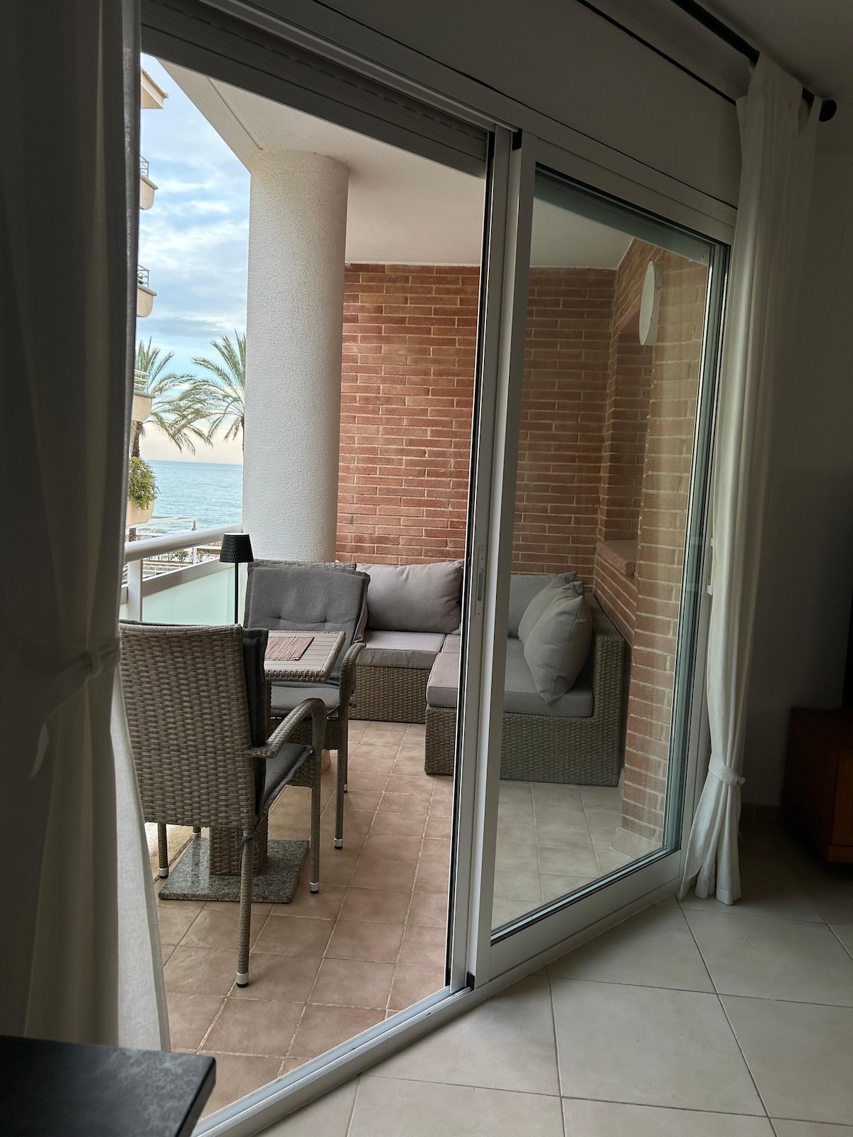This is an apartment provided with excellent sea views, located in front of the sea! It has two bedrooms, one of them with a double bed, the second bedroom has 2 single beds wich can be put together to get one double bed, in the living there is a confortable sofa which turns into a double bed. The marriage bedroom disposes of directs views towards the sea and views towards the people walking on the maritime path. The bathroom has got a bath and the kitchen is equipped with a microwave-oven and other necessary tools for you to use during your stay in our apartment! The kitchen is directly linked to the living room, where we find an amazing folding leather sofa and a Led TV of 42 pulgates connected to a sunny terrace with unbeatable sea views! Its situation is unimprovable, seeing that below 100 metres, we find supermarkets, an apotheke and restaurants. The train station is at about just 10 minutes walking, so it's not far! If you want to travel by train to Barcelona, there are 45 minutes from Cubelles to BCN, and you can catch a train every 30 minutes. You may want to go to Sitges; the ride will take you 15 minutes and moreover, you can also travel to Tarragona or Port Aventura! This will take you 1 hour more or less. Only remember that each train passes every 30 minutes!!!